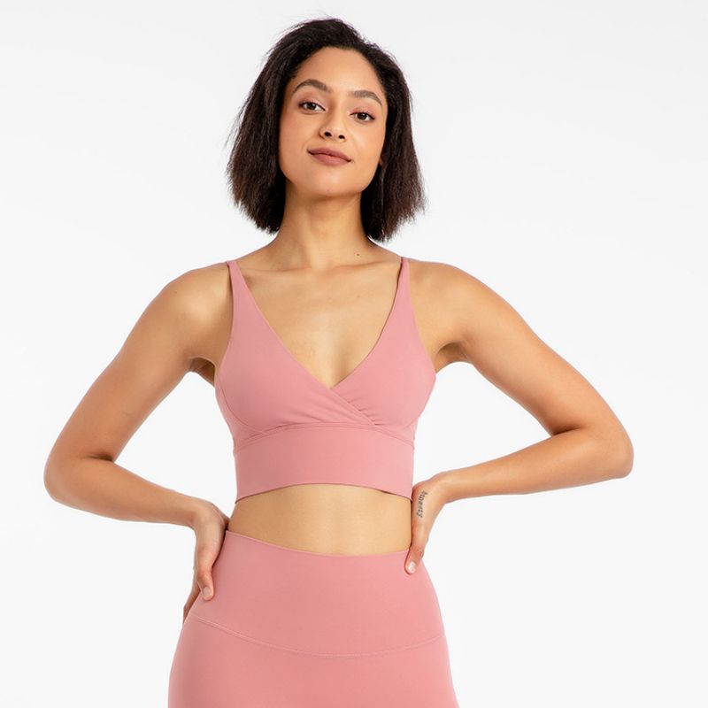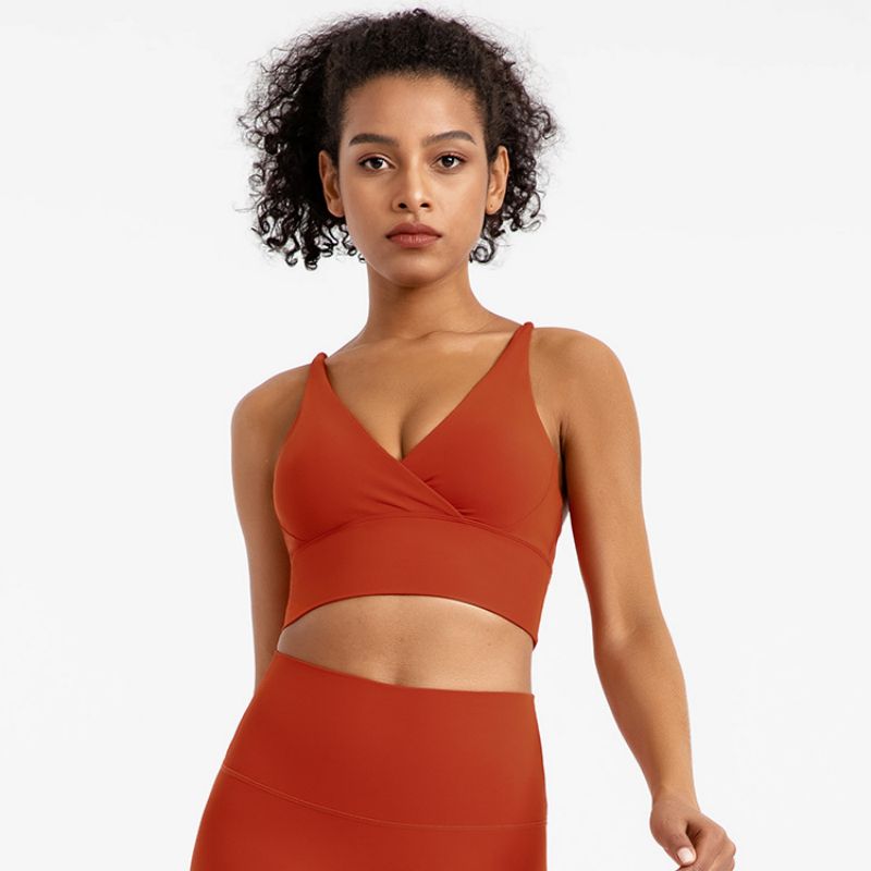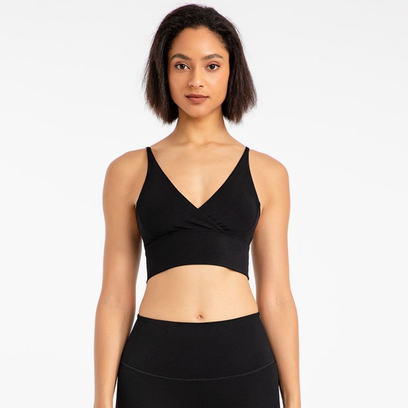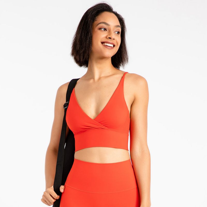 Cantidades de pedido mínimo bajo (MOQ): disfrute de los MOQ más bajos para los sujetadores deportivos de yoga con cuello en V en stock con tamaños mixtos, lo que le permite probar el mercado o atender a pedidos más pequeños. Nuestros MOQ también son altamente competitivos para las opciones personalizadas.